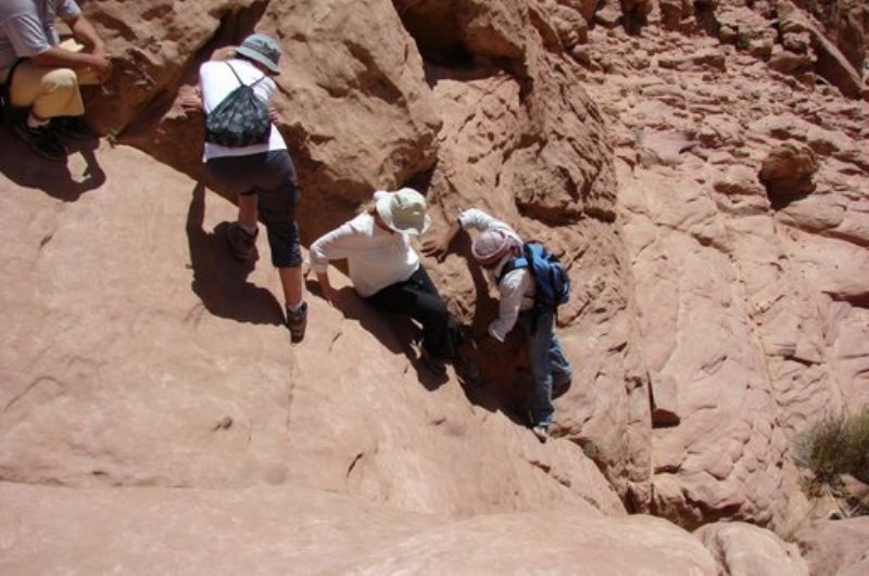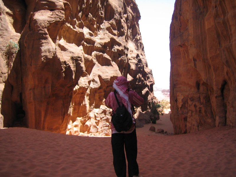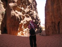 and then walk through the long narrow steep sided Um Rashed Canyon to a