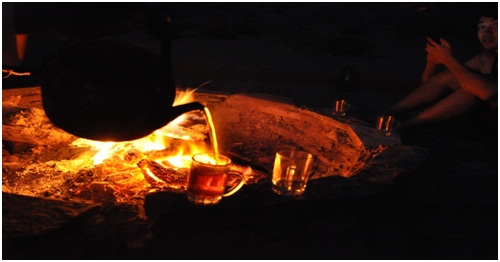 the fire to enjoy Bedouin dinner, .and Bedouin tea |