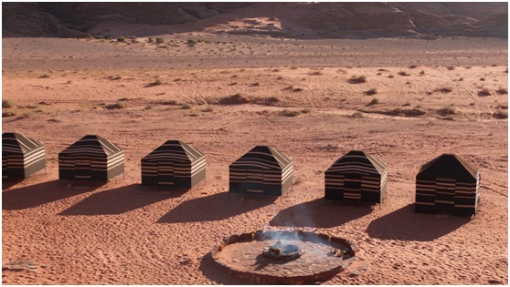 under the umbrella of a Bedouin tent. Here you can experience the desert in a comfortable